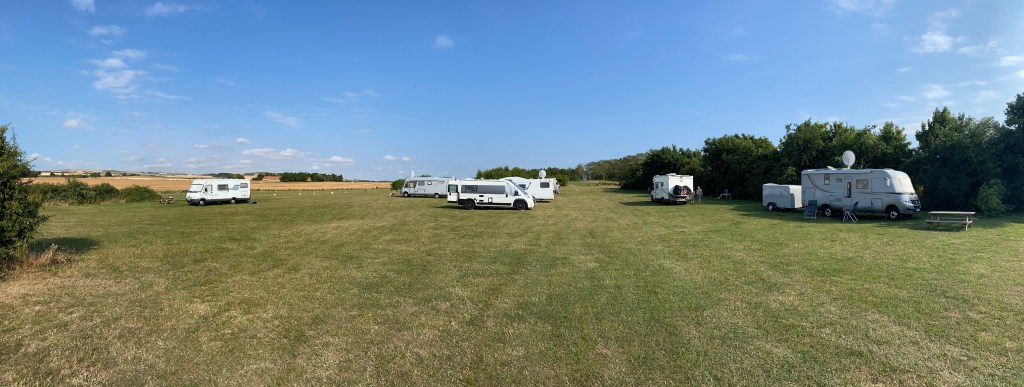 We were looking for a stop over near the Eurotunnel which we had not stayed at before when Wendy found Tardinghen aire. This is a working farm with a small number of tiered pitches over looking the sea and other pitches in a field area behind the barn.