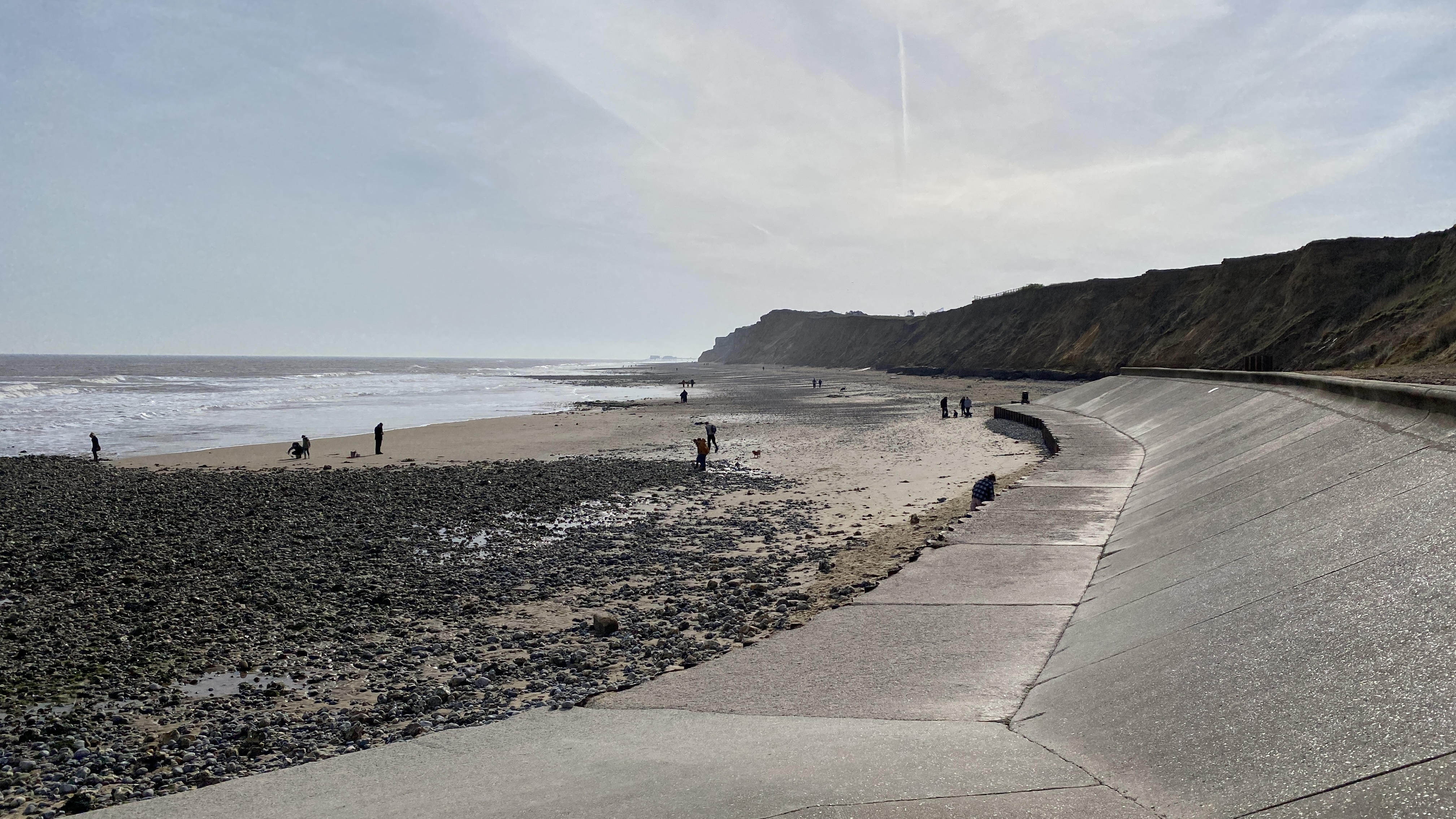 It is not easy to find parking for campervans at West Runton as most of the car parks have height barriers. The car park at the beach is limited to 2.1 metres so we parked opposite the shops on the main road.