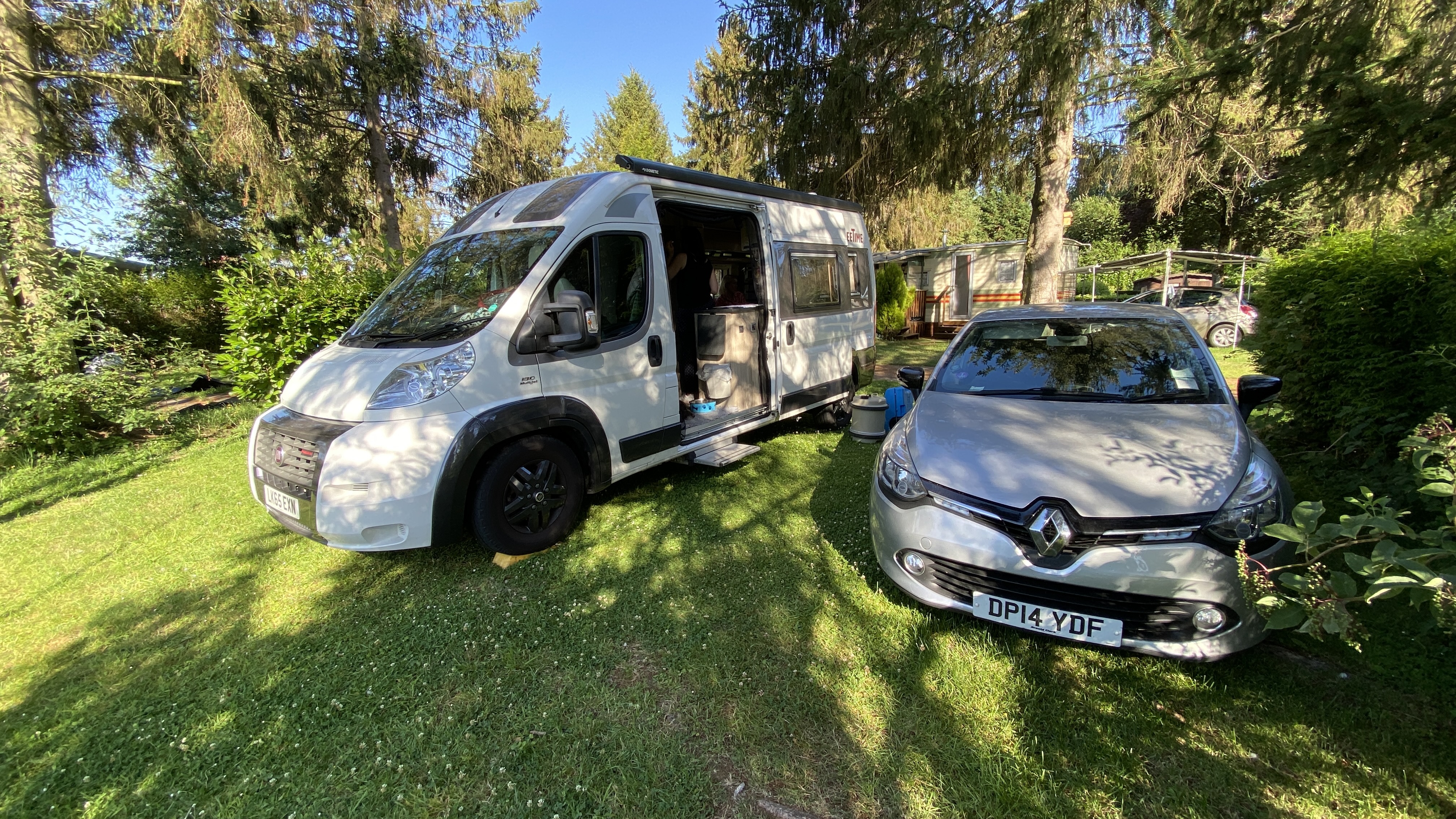 We experienced our first technical problem here. The aire is on a slope and our handbrake failed so we carefully chocked the van in place. We decided not to investigate the fault due to the slope and Wendy located a local Fiat dealer. It was Sunday so we planned to call the AA In the morning and relaxed for the night.