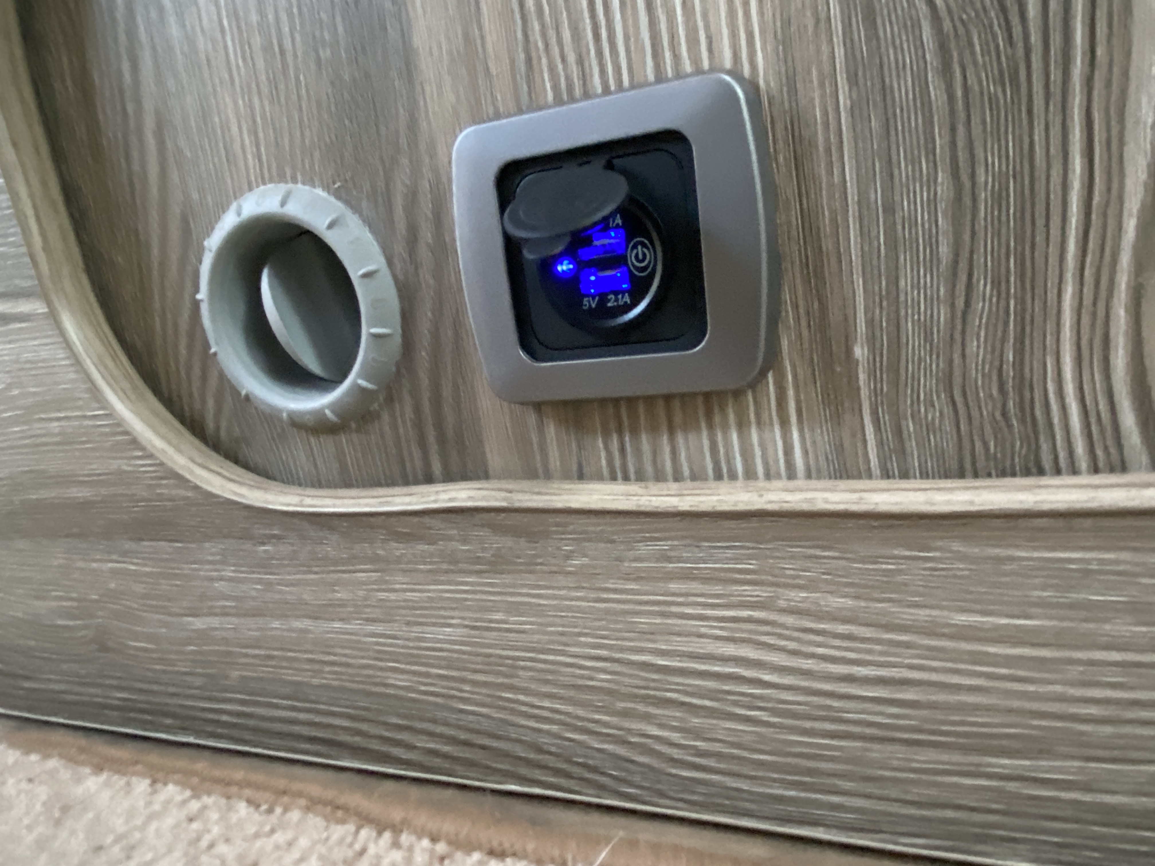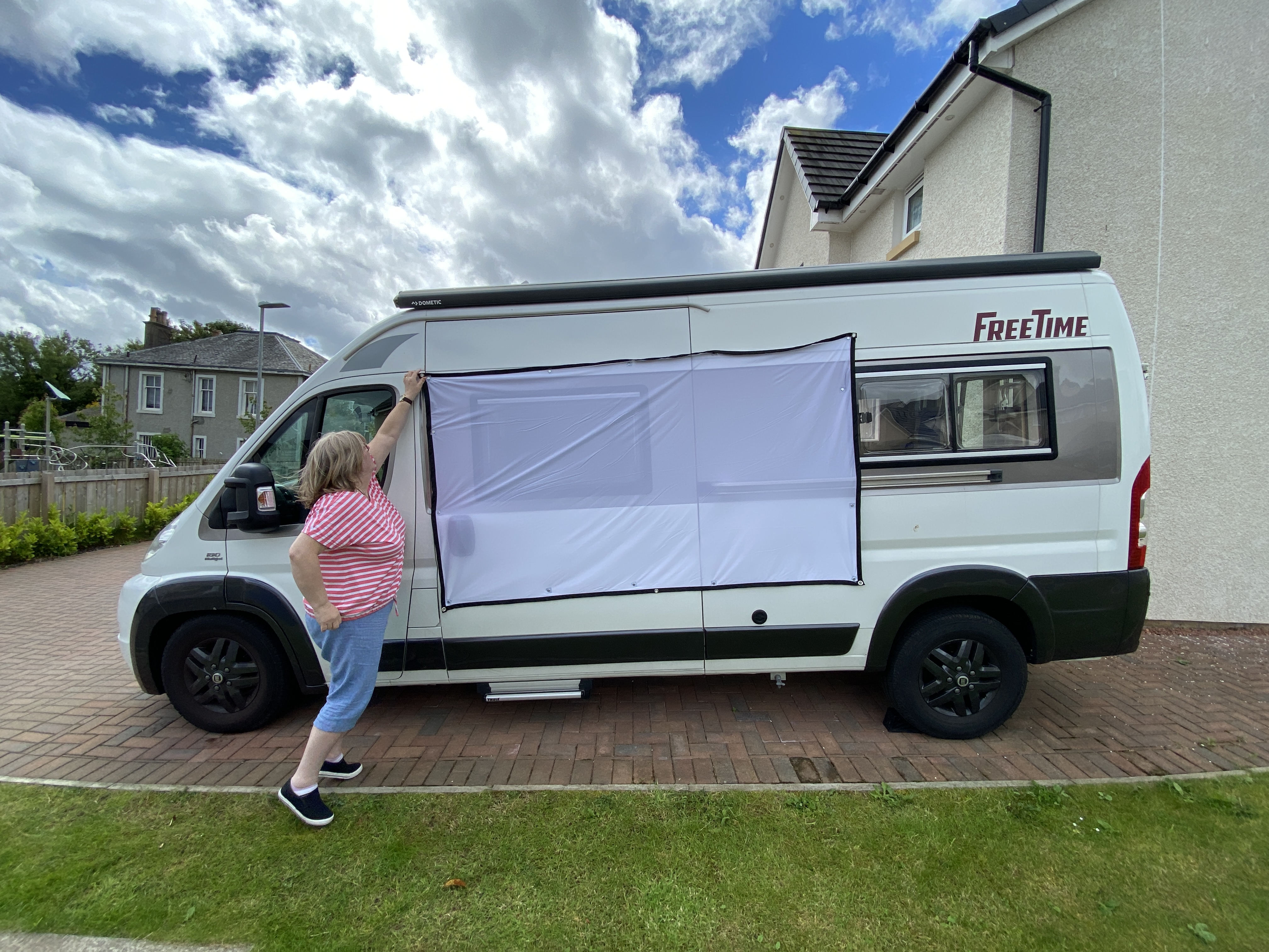 We will have a family convoy for some of the trip – the Ducato, the Caddy Maxi conversion we just completed and a Clio, so I added some extra USB sockets – we’ve now got six for when all the family are together. We also tested our projector screen for movie nights. I’ll be powering the projector from a PowerOak power bank.