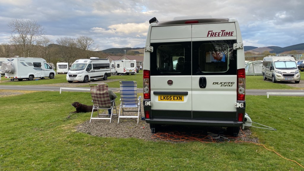 So we decided to sell our Hymer 640 primarily due to lockdown, as the European travel restrictions mean we will be touring the Scottish Highlands instead of Europe and we felt the Hymer was too large for what we will be doing. So we’ve bought a Fiat Ducato campervan and had our first weekend away in Moffat.