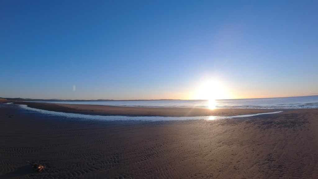 The day started well with a beautiful sunrise from our campervan door. I captured some of the sunset from the beach.