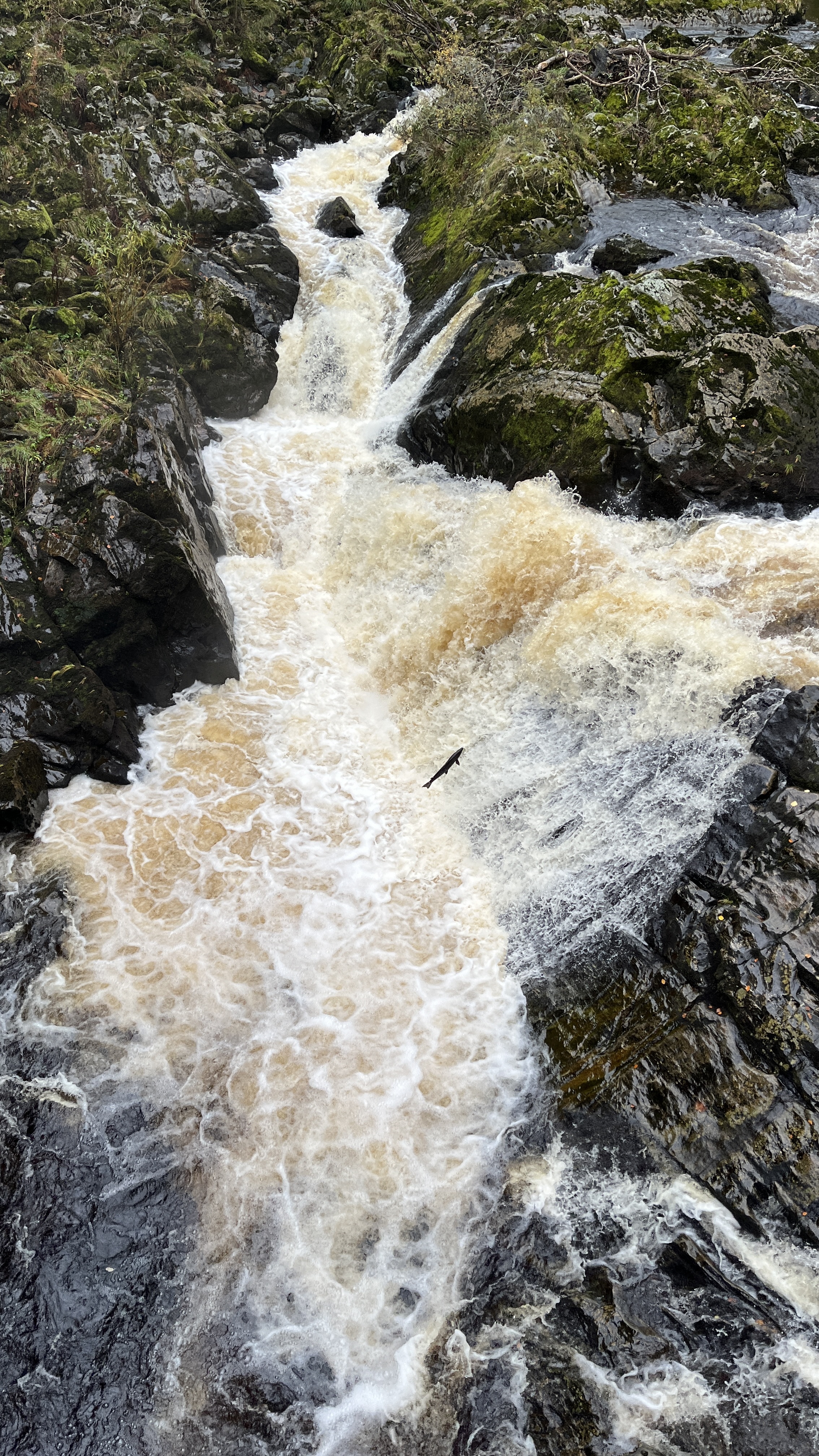 The river Tummel is damned with hydroelectric power and there is a salmon ladder too.