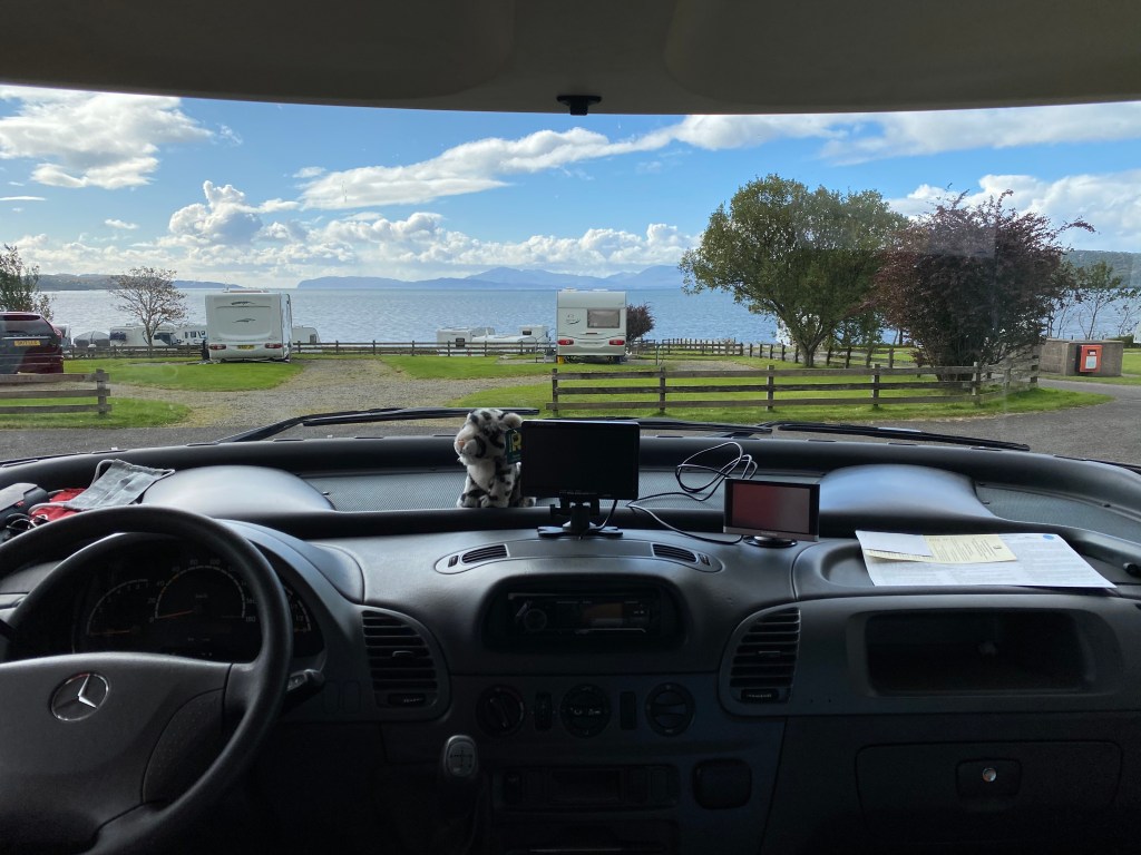 So we spent four days at North Ledaig, near Oban. We’ve been here many times over the years and we love it here. You can’t beat this view from Hylda’s windscreen…