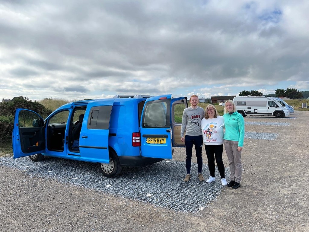 We were attending a family wedding so we decided to take our campervan and stay at the Findhorn aire. We were also joined by our son and daughter in our son’s recently converted Caddy Maxi. You’ll have ready previous posts about the conversion if you’ve been following our journey.