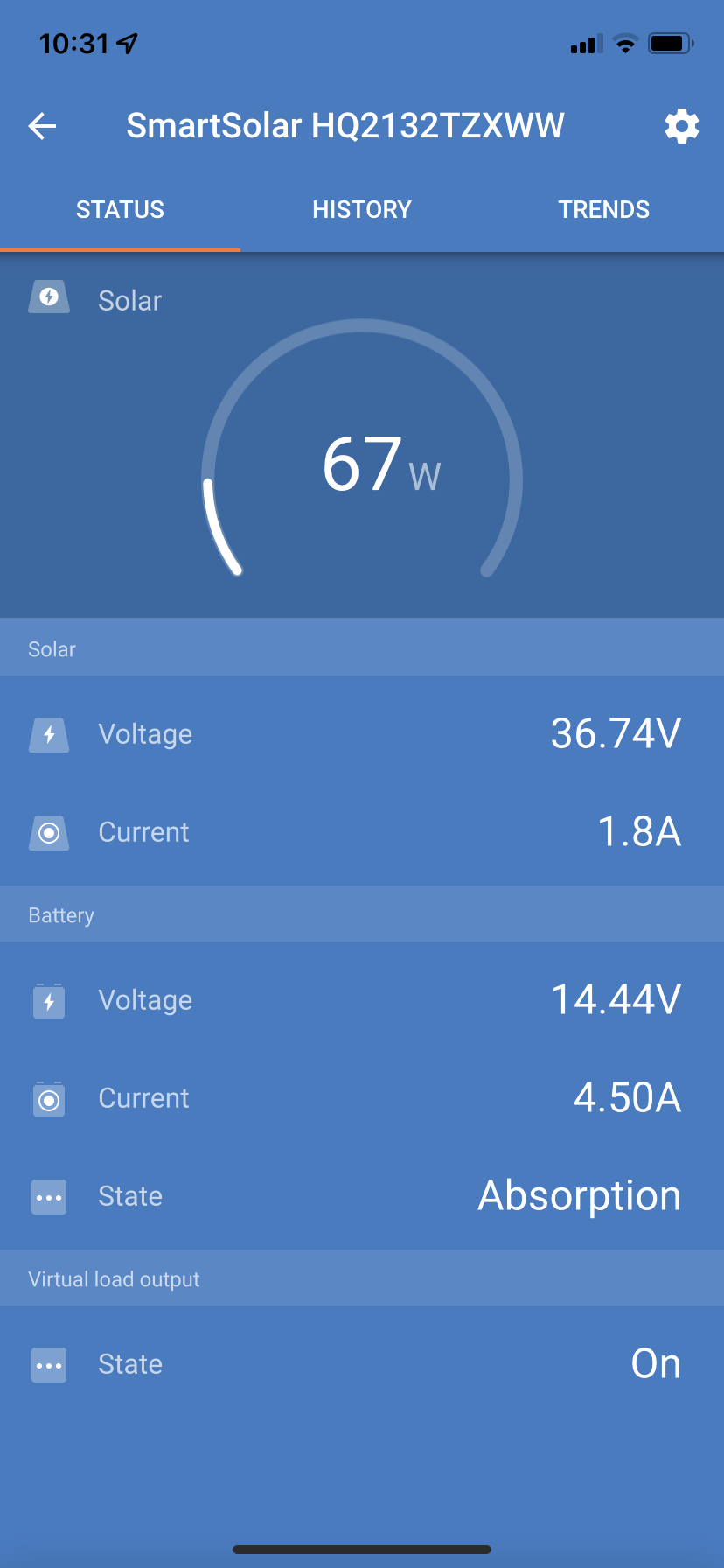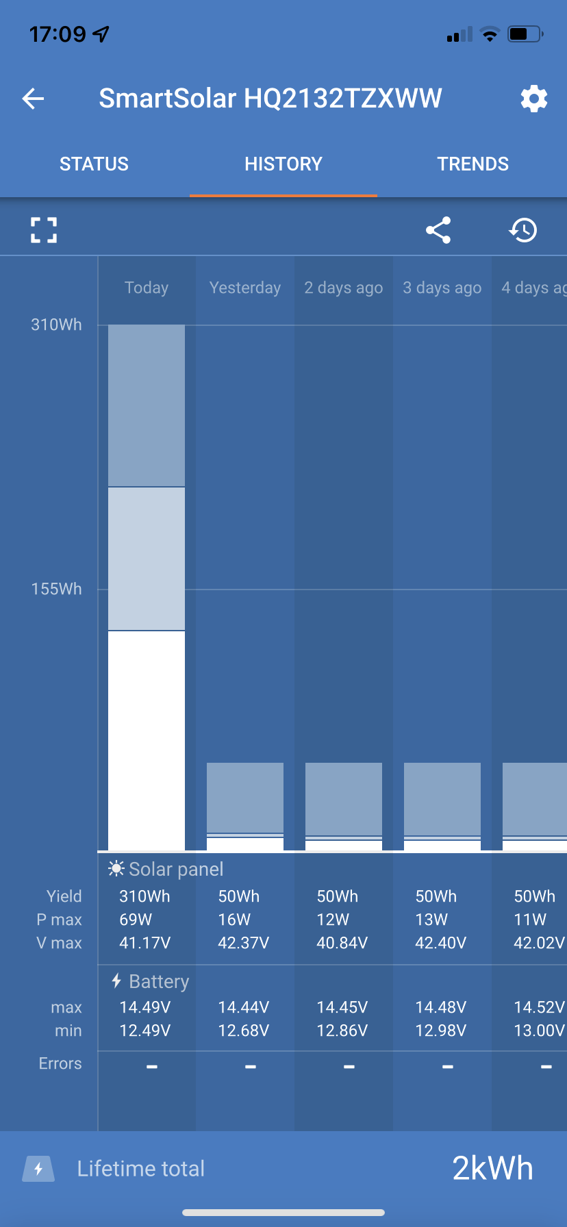 I now have 150W and 100W panels connected in series and controlled by a Victron Smart Solar 30A MPPT controller. After watching a video from Victron on YouTube I decided the best set up was two panels in series. I do love the Bluetooth connectivity of this controller.