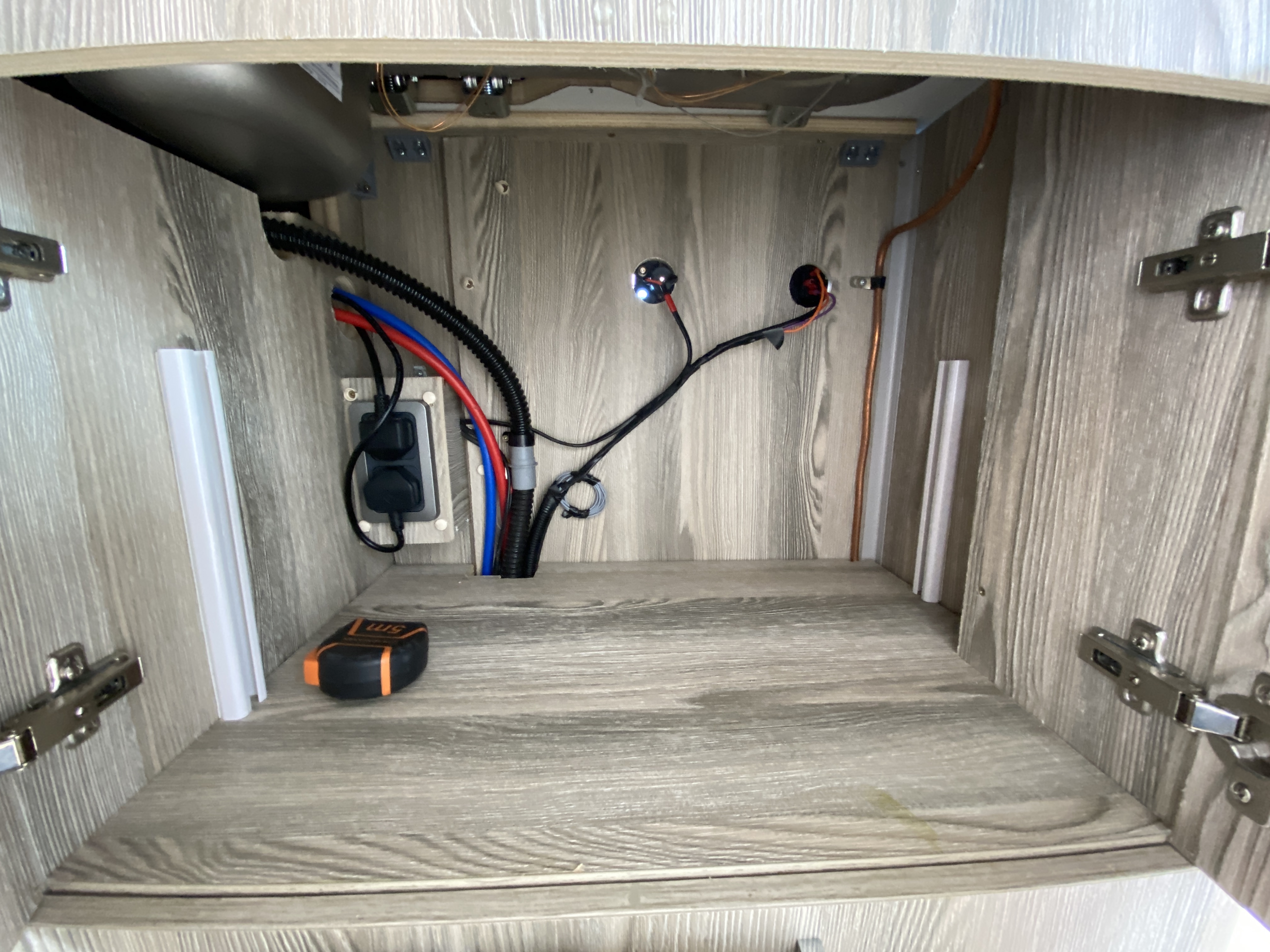 The internal cupboard required some modification as it was double skinned at some points and not at others so it needed filled in to create fixing points. Some electrical cables and the sink waste also needed rerouting.